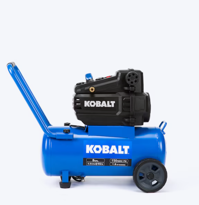 - Kobalt 8-gal, 150-PSI portable electric air compressor is perfect for use with a variety of air tools